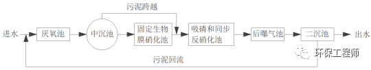 其實(shí)該工藝還有一定的缺陷,比如:①厭氧池中無(wú)法完全吸附有機(jī)物,導(dǎo)致固定膜反應(yīng)器進(jìn)水中攜帶有BOD,一方面抑制硝化反應(yīng),另一方面造成有機(jī)物的浪費(fèi)和能耗的增高;②在進(jìn)水氨氮偏高時(shí),缺氧池中反硝化除磷菌不能徹底的去除硝氮,導(dǎo)致出水TN的升高。