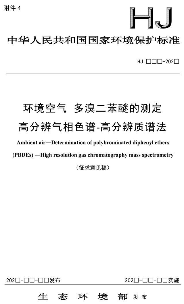 原標題:環(huán)境空氣 多溴二苯醚的測定 高分辨氣相色譜-高分辨質(zhì)譜法(征求意見稿)