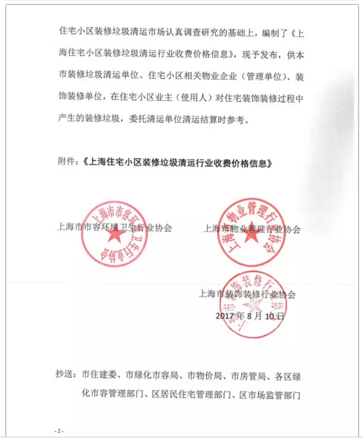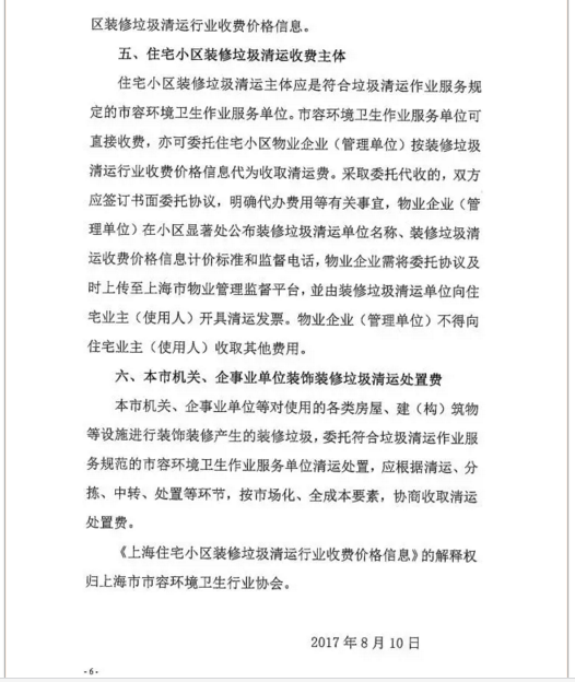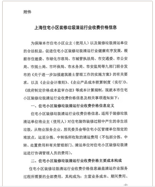 《上海市住宅小區(qū)裝修垃圾清運(yùn)行業(yè)收費(fèi)價(jià)格信息》全文內(nèi)容如下: