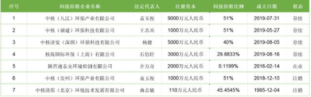 中核環(huán)保間接持股的環(huán)保企業(yè)