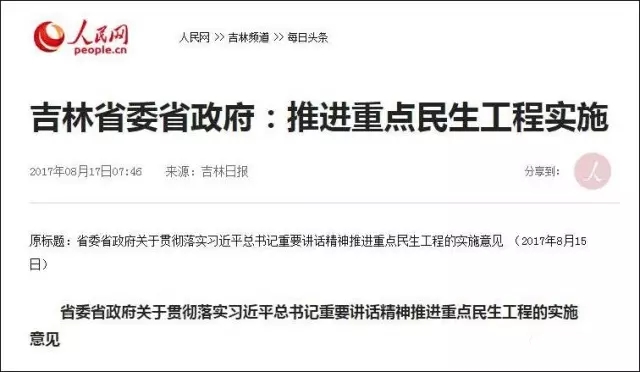 8月15日,吉林省委省政府發(fā)布了《關(guān)于貫徹落實習(xí)近平總書記重要講話精神推進(jìn)重點民生工程的實施意見》。其中,圍繞貫徹落實習(xí)近平總書記重要講話精神,結(jié)合吉林省實際,提出多項實施意見。