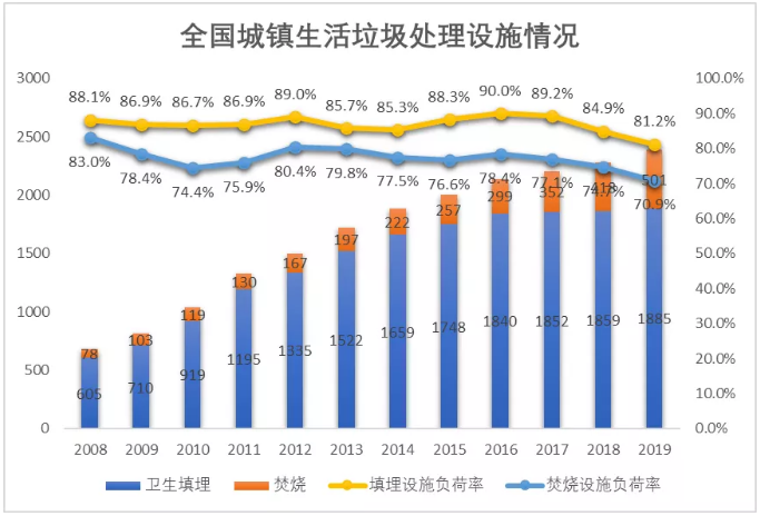 由于具有無害化、減量化和資源化等特點(diǎn),垃圾焚燒發(fā)展迅速,垃圾焚燒發(fā)電廠數(shù)量以及垃圾處理量占比都呈持續(xù)上升趨勢,行業(yè)發(fā)展前景廣闊。已投入運(yùn)營的生活垃圾焚燒廠數(shù)量則由2008年的78座增長至2019年的501座,平均每座生活垃圾焚燒廠的處理能力由683噸/日增長至1041噸/日,體現(xiàn)出我國生活垃圾焚燒處理設(shè)施逐漸大型化、成熟化、穩(wěn)定化的基本特征。而焚燒廠的運(yùn)營負(fù)荷率始終保持在70~80%的較健康水平。部分生活垃圾焚燒廠未能達(dá)到滿負(fù)荷運(yùn)營,其中原因較為復(fù)雜,主要可分為以下兩類:入廠垃圾量達(dá)不到設(shè)計(jì)處理能力、處理設(shè)施穩(wěn)定連續(xù)運(yùn)營能力不足。生活垃圾焚燒廠運(yùn)營社會(huì)資本應(yīng)注意其中風(fēng)險(xiǎn)。