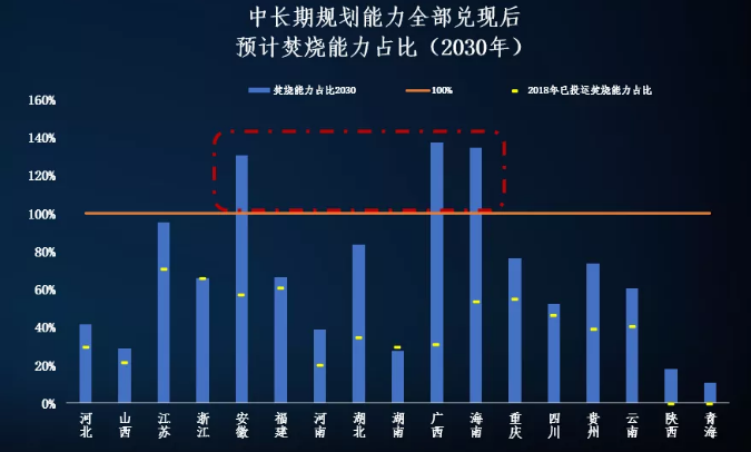 我們認(rèn)為在未來5~10年的生活垃圾焚燒市場中將更多的充斥著小體量的縣鎮(zhèn)項(xiàng)目,大項(xiàng)目、好項(xiàng)目將減少。另一方面,我們對(duì)各省中長期規(guī)劃的本底值可靠性進(jìn)行了進(jìn)一步考察,發(fā)現(xiàn)有些省份若以起中長期規(guī)劃推演,至其規(guī)劃期截止,若全部規(guī)劃能力兌現(xiàn),焚燒能力已經(jīng)超過了當(dāng)?shù)厣罾a(chǎn)生總量的100%。若該省份人口不能如長三角和珠三角地區(qū)在未來發(fā)生強(qiáng)烈吸納作用,則實(shí)際上仍存在落地風(fēng)險(xiǎn)。