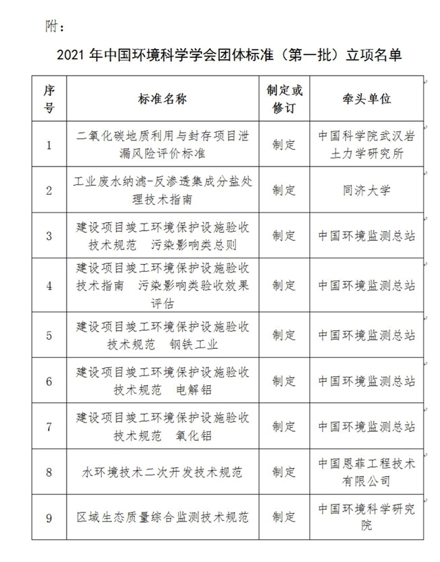 附件:2021年中國環(huán)境科學學會團體標準(第二批)立項名單