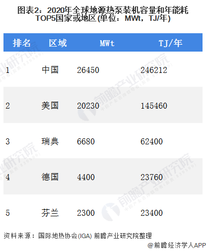 關(guān)于全球地源熱泵裝機(jī)情況,根據(jù)國際地?zé)釁f(xié)會(huì)(IGA),全球地源熱泵裝機(jī)容量最大的五個(gè)國家是:中國、美國、瑞典、德國和土耳其,占世界的71.1%。2020年我國地源熱泵裝機(jī)容量26450MW,位居全球第一位,并且是連續(xù)多年位列世界第一,地源熱泵產(chǎn)業(yè)已走在世界前列;