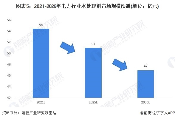 因此,在水處理劑使用方面,由于煤炭資源和水資源呈逆向分布特點(diǎn),45%的火電廠裝機(jī)建于“過(guò)度取水”區(qū),火力發(fā)電用水占全國(guó)工業(yè)用水總量的30%-40%,其中循環(huán)冷卻水用量占比70%以上,未來(lái)隨著國(guó)家節(jié)能減排和清潔能源的使用的加大,整體發(fā)電量增速放緩,火電發(fā)電的使用份額進(jìn)一步下降,電力水處理劑有望隨之整體下降,預(yù)計(jì)到2025年市場(chǎng)規(guī)模或?qū)⑾陆抵?1億元左右,到2030年下降至47億元。