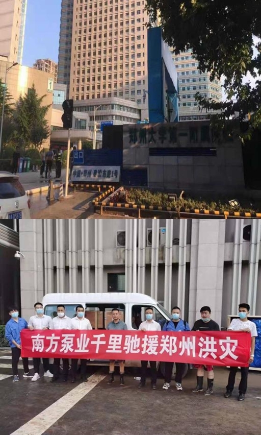 災情伊始,南方泵業(yè)駐河南辦事處即便在自身受災的情況下,也即刻組織了抗洪救災小組,主動聯(lián)系鄭州市自來水公司和亞洲最大的醫(yī)院(鄭州大學第一附屬醫(yī)院),共同會商搶救搶修方案。南方泵業(yè)以“保民生,穩(wěn)民生”的宗旨,積極抗災前線,在第一時間對受災嚴重的民生單位,表達了水泵的捐贈事宜,以盡快恢復正常的民生秩序,保障居民的生活用水。