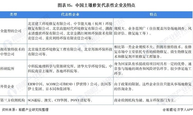 目前國內從事土壤修復的企業(yè)越來越多,用“雨后春筍”來形容毫不為過。由于預期土壤修復市場規(guī)模巨大,各行各業(yè)都開始往這方面發(fā)展。從產(chǎn)業(yè)鏈角度看,我國土壤修復行業(yè)既有綜合性企業(yè),也有專注于修復咨詢、技術支撐、調查評估、修復工程、第三方檢測,甚至學術研究、地質礦山、土壤肥料、土方工程、植物營養(yǎng)等某一方面的企業(yè)和機構。