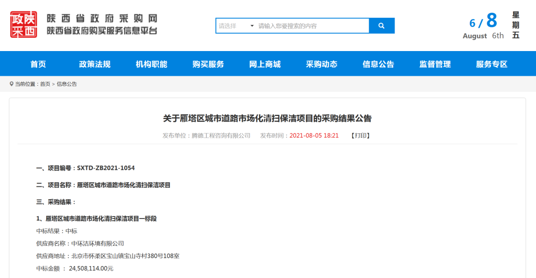 陜西省政府采購(gòu)網(wǎng)消息,8月5日,西安市雁塔區(qū)城市道路市場(chǎng)化清掃保潔項(xiàng)目開標(biāo)再現(xiàn)大場(chǎng)面。