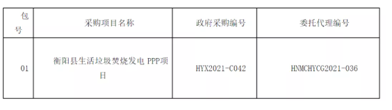 近日,中國固廢網(wǎng)從E20標訊系統(tǒng)E標通獲悉,湖南省衡陽市衡陽縣生活垃圾焚燒發(fā)電PPP項目公開招標。項目建設投資估算總額約為3.59億元。
