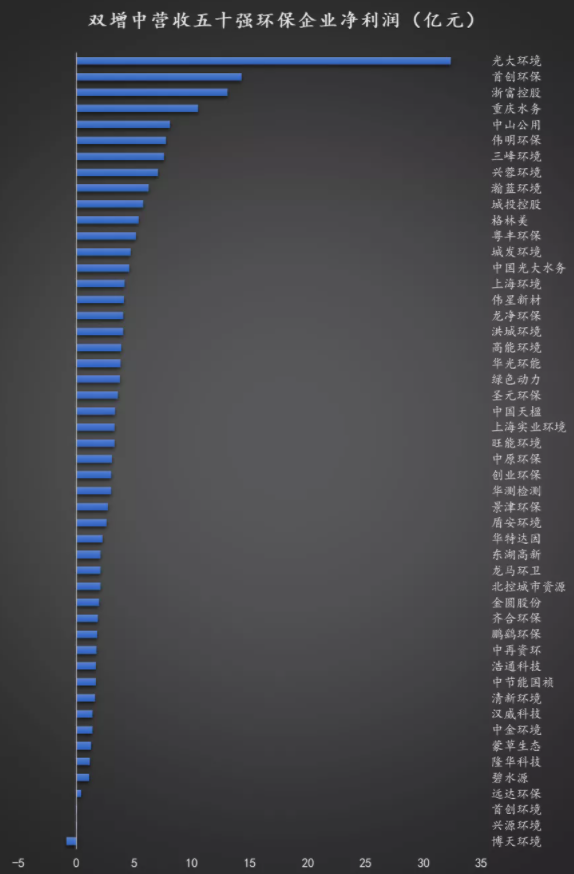 附:營收&凈利雙增環(huán)保企業(yè)中的營收五十強企業(yè)數據一覽表