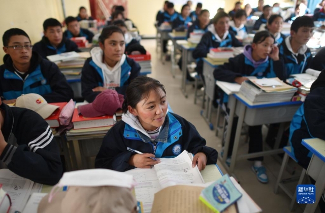 11月25日,青海省海南藏族自治州興??h民族高級中學高一(1)班學生在教室內(nèi)聽講。新華社記者 駱曉飛 攝