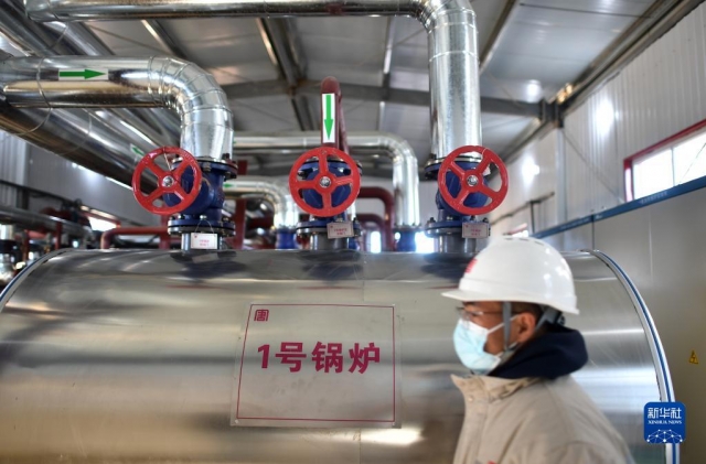 11月25日,大唐青海能源開發(fā)有限公司一名工人在青海省海南藏族自治州興??h民族高級中學鍋爐房內(nèi)巡檢。新華社記者 駱曉飛 攝