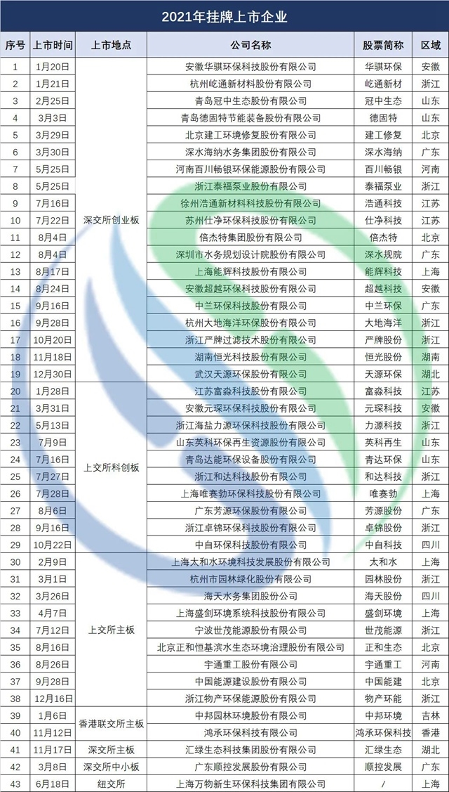 原標題:擬募資近200億!2021年43家新增環(huán)保上市公司來襲!