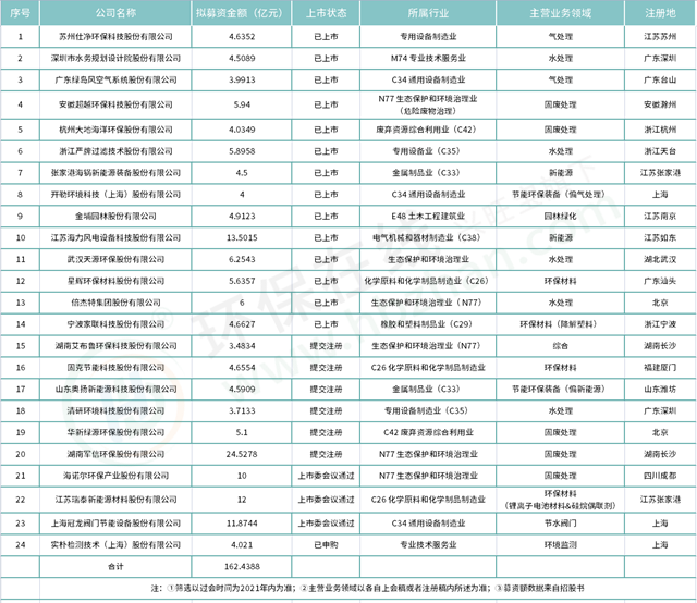 不過,可以看到,24家企業(yè)擬募資金額合共也才162億出頭一點(diǎn),募資規(guī)模普遍較小,10億+的有海力風(fēng)電、軍信環(huán)保、海諾爾、瑞泰和冠龍閥門。不過從已上市的14家企業(yè)來看,天源環(huán)保募資凈額達(dá)到11.28億元,星輝環(huán)材達(dá)到25.09億元。