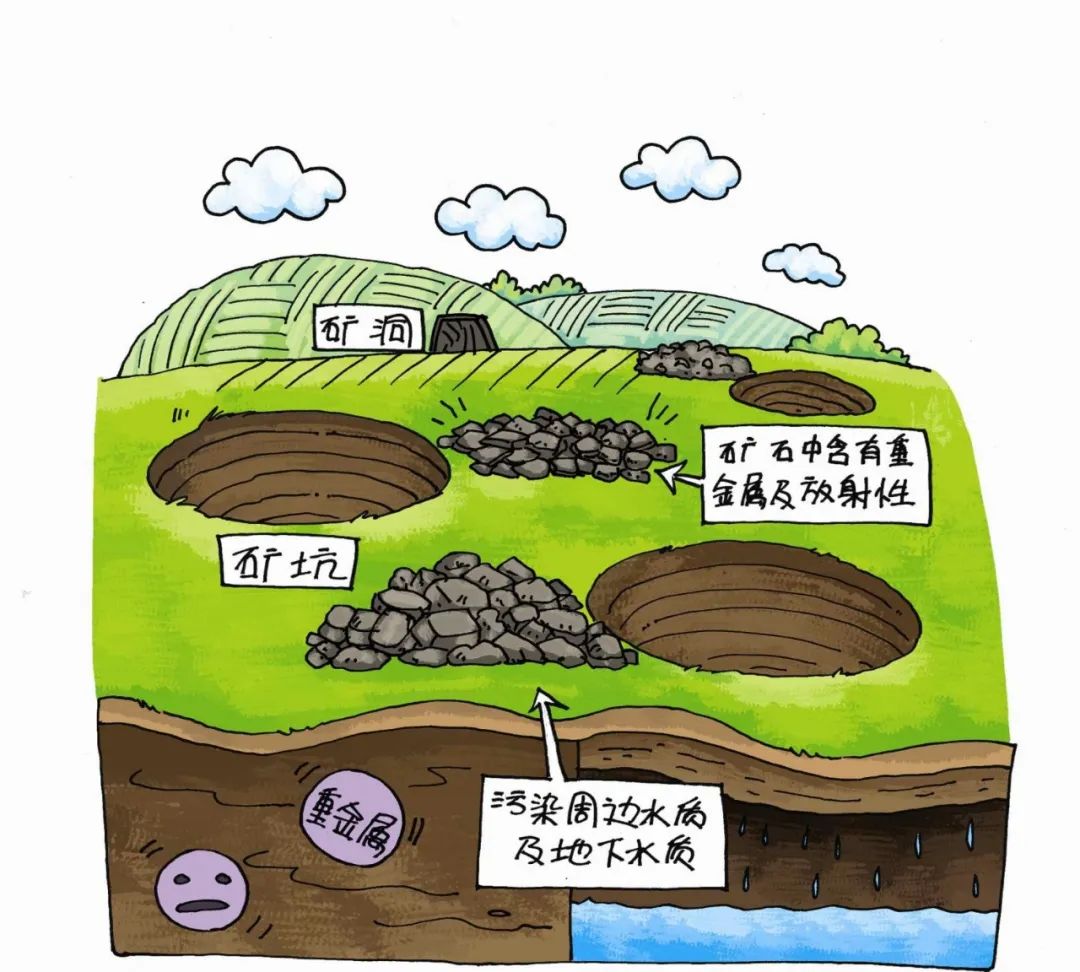 礦山固體廢物是在采礦和選礦過程中產(chǎn)生的沒有工業(yè)價值的礦物,例如尾礦、廢石以及煤矸石等。這些廢物通常都含有重金屬等污染物。另外,還會有選礦過程加入的一些表面活性劑、酸或者堿等危害環(huán)境的成分。有些礦山固體廢物還有一定的放射性。它們通常會堆在礦場附近,既侵占良田,又在長期的風(fēng)化及雨水的淋洗下,使周邊的地下水質(zhì)變壞,特別是酸性水或含有重金屬的污水,污染周邊環(huán)境。