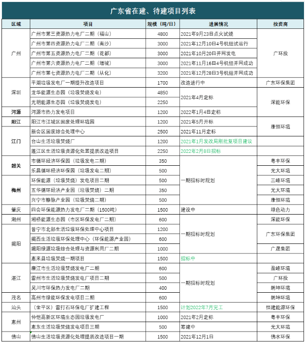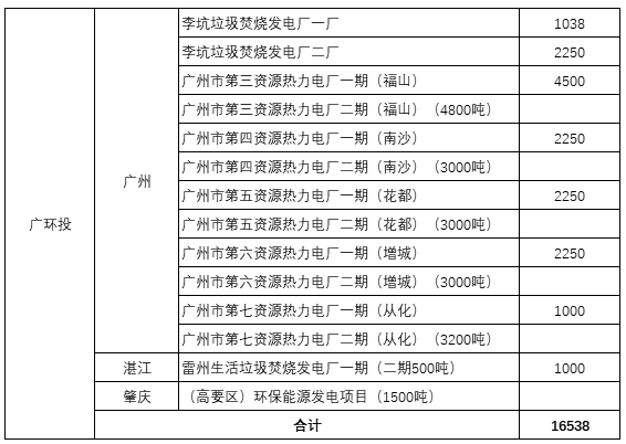 49350噸/日項目在建、待建,廣環(huán)投、深能環(huán)保領跑