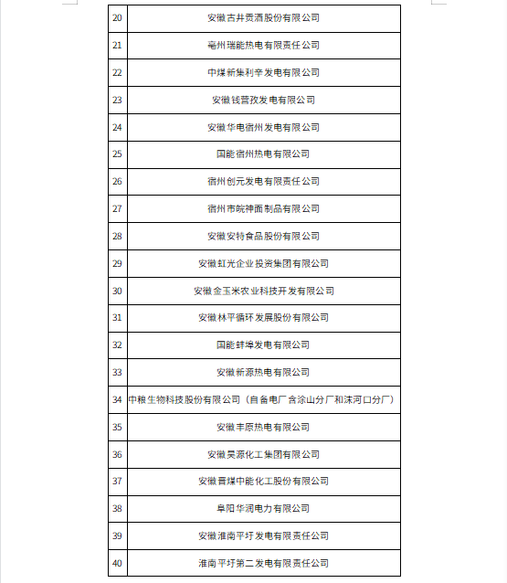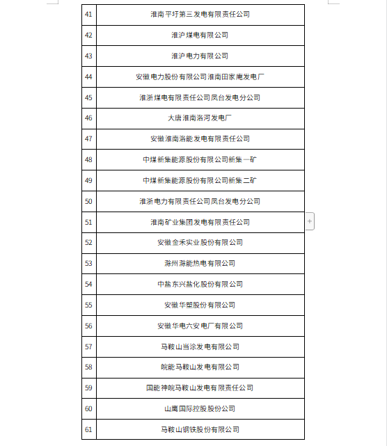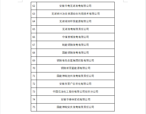 安徽省2021年度發(fā)電行業(yè)重點排放單位名錄