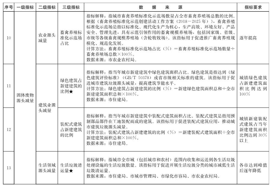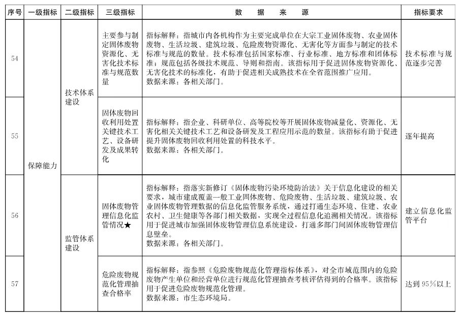 (三)工作目標(biāo)。各市(含定州、辛集市,下同)同步啟動“無廢城市”建設(shè),有序納入國家建設(shè)行列,形成雄安新區(qū)率先突破、各市梯次發(fā)展的“無廢城市”集群。“十四五”時期,全省大宗固體廢物綜合利用水平持續(xù)提升,尾礦庫環(huán)境風(fēng)險(xiǎn)有效管控;生活源和農(nóng)業(yè)源固體廢物充分資源化利用,綠色低碳“無廢”理念普遍形成;制度、技術(shù)、市場、監(jiān)管體系和管理信息“一張網(wǎng)”基本建立,固體廢物治理體系和治理能力得到明顯提升。