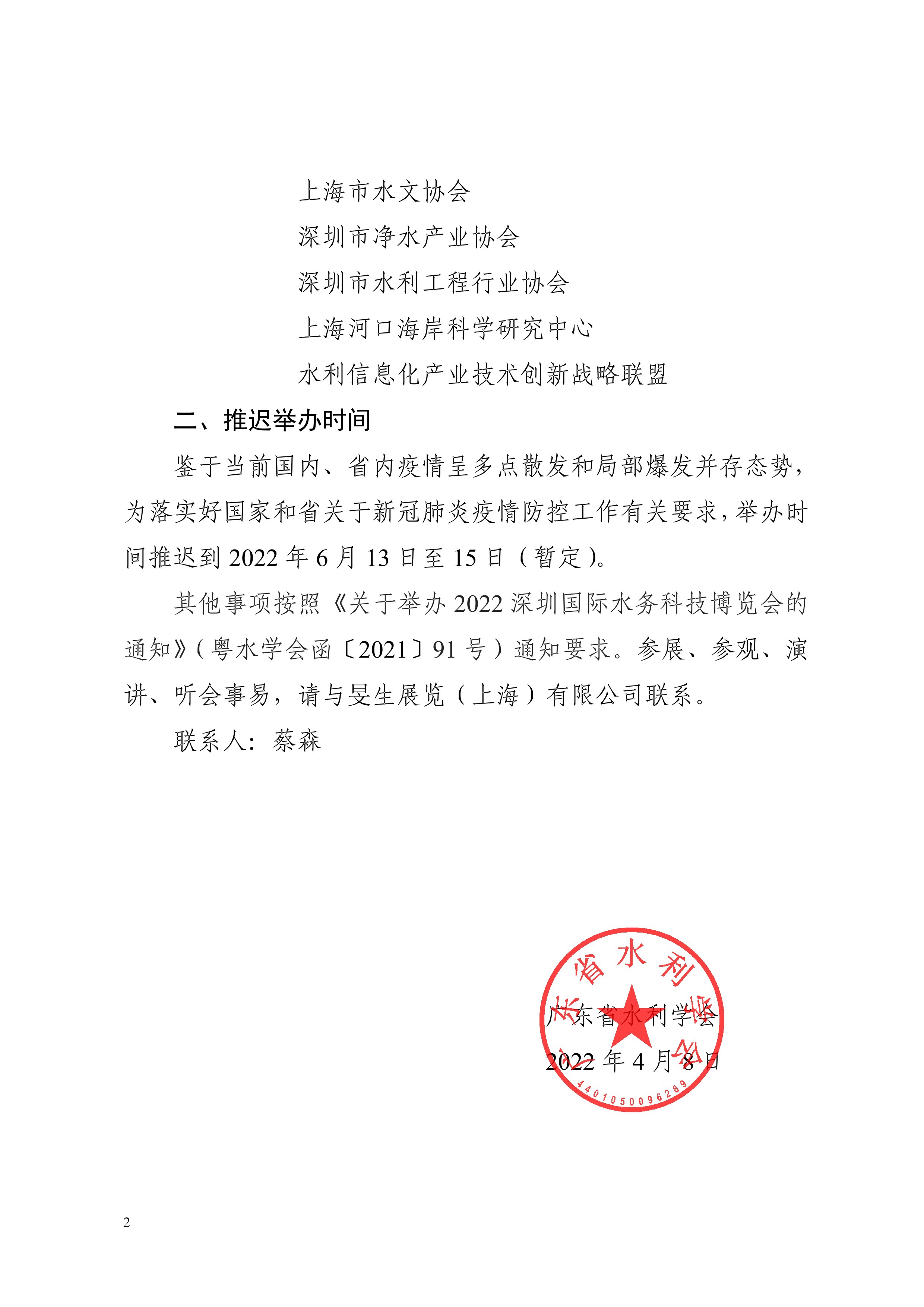 其他不變,按《關(guān)于舉辦2022深圳國際水務(wù)科技博覽會的通知》(粵水學(xué)會函〔2021〕91 號)。參展、參觀、演講、聽會事易,請與旻生展覽(上海)有限公司聯(lián)系。