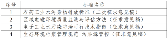 4項征求意見標(biāo)準(zhǔn),涉及1項控制標(biāo)準(zhǔn)、1項水污染防治技術(shù)指南、1項管理規(guī)范和1項監(jiān)測評估方法,具體見下表。