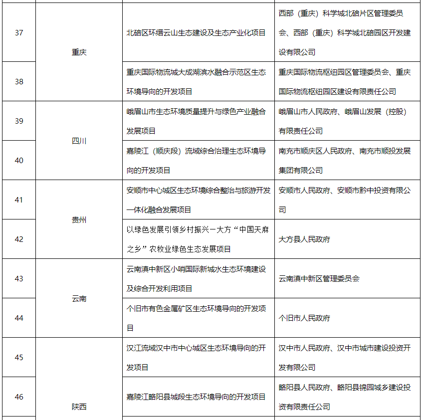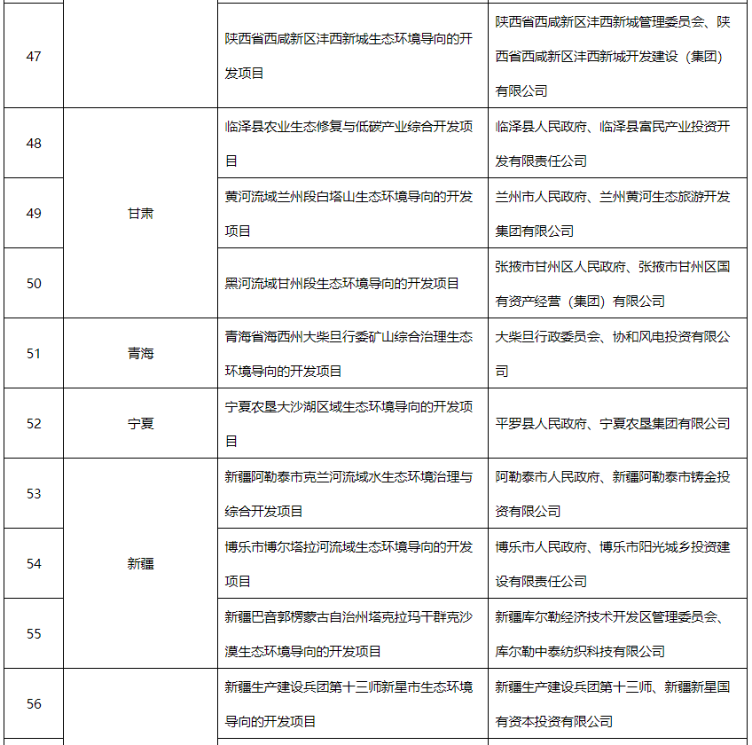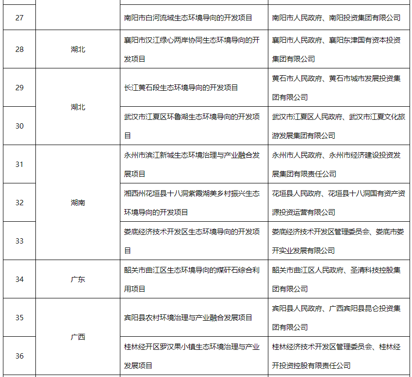 以下為第二批生態(tài)環(huán)境導(dǎo)向的開發(fā)(EOD)模式試點(diǎn)項(xiàng)目名單表: