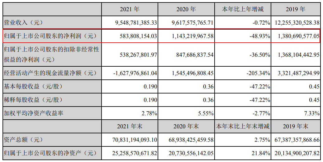 業(yè)績承諾2021年凈利潤不低于15%,實(shí)際下降48.93%