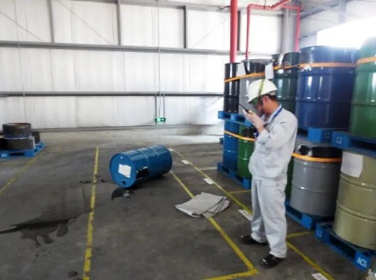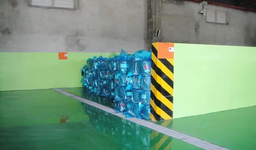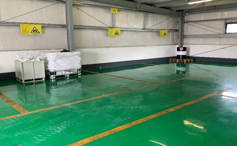 ▲貯存液態(tài)廢物區(qū)已設(shè)置泄露液體收集溝、池