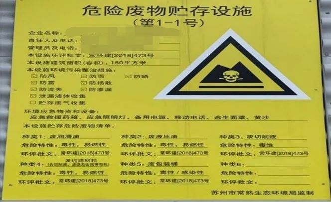 在收集、貯存、運(yùn)輸、利用、處置危險(xiǎn)廢物的設(shè)施、場所均應(yīng)設(shè)置規(guī)范(形狀、顏色、圖案均正確,其中貯存場所還應(yīng)按照《關(guān)于進(jìn)一步加強(qiáng)危險(xiǎn)廢物污染防治工作的實(shí)施意見》(蘇環(huán)辦字〔2019〕222號)要求規(guī)范設(shè)置識別標(biāo)識)的危險(xiǎn)廢物識別標(biāo)志。