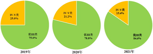 2021年,示范區(qū)優(yōu)Ⅲ類水質斷面比例為84.6%,無劣Ⅴ類斷面。氨氮、總磷平均濃度和高錳酸鹽指數(shù)平均值分別為0.35、0.119和4.1毫克/升。