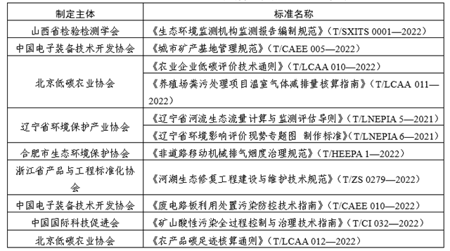 5月,全國團(tuán)體標(biāo)準(zhǔn)信息平臺(tái)公布了11項(xiàng)生態(tài)保護(hù)和環(huán)境治理類團(tuán)體標(biāo)準(zhǔn),詳見表2。
