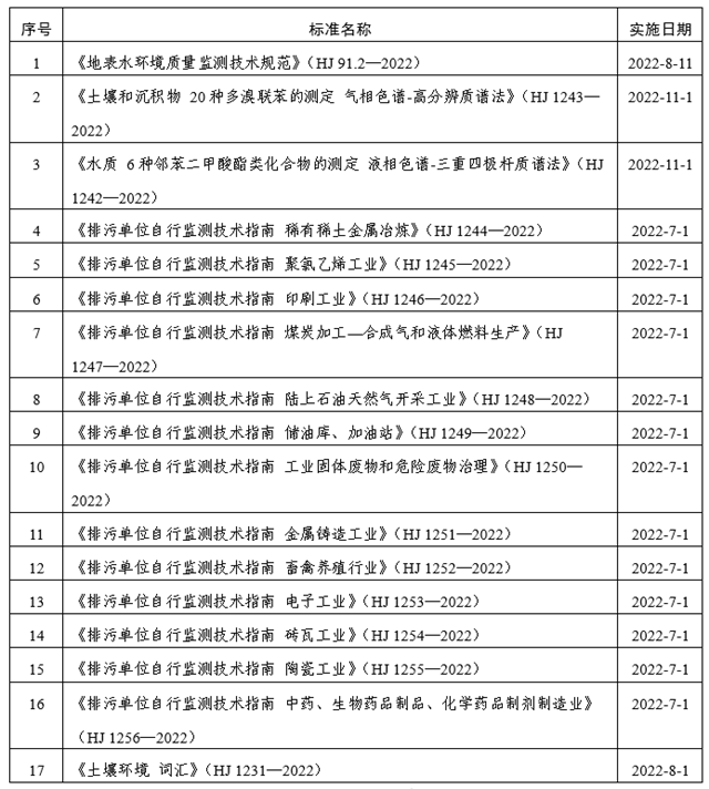 生態(tài)環(huán)境部5月發(fā)布17項(xiàng)國家生態(tài)環(huán)境標(biāo)準(zhǔn),詳見表1。