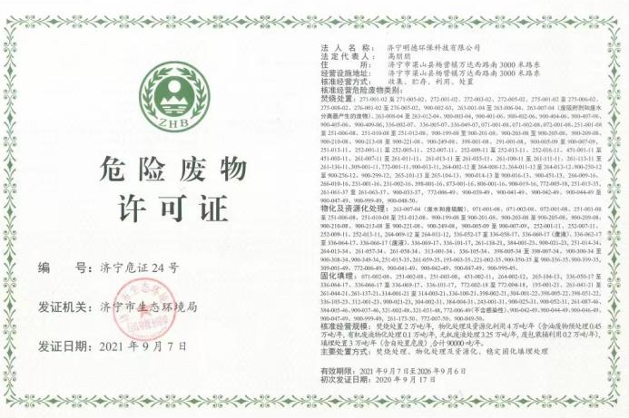 ▲ 濟寧明德項目成功申領(lǐng)5年期