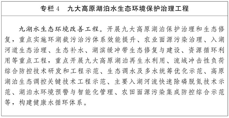 通過實(shí)施污染防治和生態(tài)修復(fù)重點(diǎn)工程,充分激發(fā)市場(chǎng)對(duì)環(huán)保技術(shù)、裝備、產(chǎn)品及服務(wù)的需求。統(tǒng)籌推進(jìn)山水林田湖草一體化保護(hù)和修復(fù)系列重點(diǎn)工程,以市場(chǎng)需求拉動(dòng)環(huán)保產(chǎn)業(yè)加快發(fā)展。重點(diǎn)流域水污染防治。統(tǒng)籌水環(huán)境保護(hù)、水生態(tài)修復(fù)、水資源利用,重點(diǎn)實(shí)施長(zhǎng)江上游、赤水河流域(云南段)、九大高原湖泊流域、重要集中式飲用水水源地生態(tài)保護(hù)與修復(fù)工程,加快推進(jìn)農(nóng)業(yè)農(nóng)村面源污染治理,實(shí)施湖濱緩沖帶生態(tài)修復(fù)與濕地保護(hù)建設(shè),實(shí)施城市中水、雨水循環(huán)利用,工業(yè)、商業(yè)廢水回收利用等水資源循環(huán)利用工程。