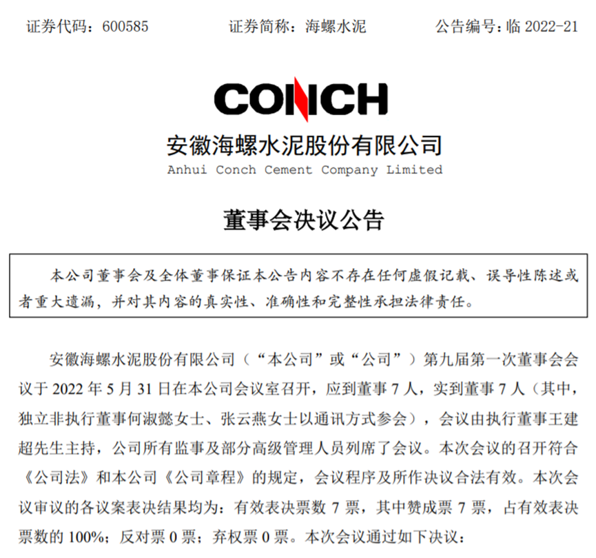 2022年3月9日,海螺水泥發(fā)布公告稱,2022年將投資50億元用于發(fā)展光伏電站、儲能等新能源業(yè)務(wù),實現(xiàn)下屬工廠光伏發(fā)電全覆蓋,預(yù)計至2022年底,光伏發(fā)電裝機(jī)容量可達(dá)1GW,年發(fā)電能力10億度。在環(huán)保領(lǐng)域,6月3日,海螺水泥發(fā)布公告稱,為加強(qiáng)資源整合及產(chǎn)業(yè)融合,海螺水泥擬對海螺環(huán)保進(jìn)行控股收購,以鞏固海螺水泥作為海螺環(huán)保第一大股東的基礎(chǔ),并最終通過委任海螺環(huán)保董事會大部分董事,實現(xiàn)對海螺環(huán)保的控制和并表。 截至公告日,海螺水泥直接持有及通過境外海螺香港間接持有股份占海螺環(huán)??偣杀颈壤秊?3.83%,為第一大股東。自海螺環(huán)保上市破發(fā)后,海螺水泥便頻頻出手進(jìn)行多筆增持,持股比例不斷上升。海螺環(huán)保近年來的業(yè)績整體來看也非常可觀。2019年至2021年,海螺環(huán)保的營業(yè)收入分別為7.38億元、11.44億元、16.98億元,同比增長分別為85.6%、55.06%、48.44%;歸屬凈利潤分別3.53億元、4.69億元、5.79億元,同比增長分別為51.28%、32.74%、23.37%。海螺環(huán)保作為安徽省環(huán)保領(lǐng)域龍頭企業(yè),海螺水泥收購海螺環(huán)保不僅有利于將傳統(tǒng)水泥窯與廢棄物處置相結(jié)合,推動循環(huán)經(jīng)濟(jì)發(fā)展的綠色轉(zhuǎn)型,而且有助于布局水泥主業(yè)相關(guān)的新興產(chǎn)業(yè),打造新的產(chǎn)業(yè)增長極和利潤增長點,具有重要的戰(zhàn)略意義。在王誠辭去海螺水泥董事長、執(zhí)行董事職務(wù)后,6月1日,海螺水泥發(fā)布公告稱,根據(jù)公司經(jīng)營管理需要,董事會一致推選王建超先生代為履行公司第九屆董事會董事長及與董事長相關(guān)的其它職責(zé),直至董事會選舉產(chǎn)生新一任董事長為止。此外,據(jù)海螺集團(tuán)官網(wǎng)顯示,5月19日,海螺集團(tuán)五屆一次董事會上,選舉楊軍擔(dān)任海螺集團(tuán)董事長一職。據(jù)了解,王誠的繼任者楊軍是此前有色控股的掌舵人,1969年12月出生,正高級經(jīng)濟(jì)師。從履歷來看,2010年7月至2012年9月楊軍任銅陵有色總經(jīng)理,2012年9月至2014年7月任有色控股黨委副書記、董事、總經(jīng)理,以及旗下上市公司銅陵有色的黨委書記;2014年7月至2014年8月任有色控股黨委書記、總經(jīng)理、董事、銅陵有色黨委書記;2014年8月至2015年3月任有色控股董事長、黨委書記、總經(jīng)理;2015年3月至本次任命之前擔(dān)任有色控股董事長、黨委書記,2014年8月至本次任命之前擔(dān)任銅陵有色董事長。資料顯示,有色控股和海螺集團(tuán)是安徽省僅有的入選世界500強(qiáng)的兩家本土企業(yè)。其中,有色控股是安徽省首家銷售收入突破千億元大關(guān)的企業(yè),上市公司銅陵有色是中國銅工業(yè)板塊第一股。2021年,銅陵有色和海螺水泥分別實現(xiàn)營收1310.34億元和1679.53億元,在安徽省屬企業(yè)中的地位舉足輕重。新任掌舵人將帶領(lǐng)海螺集團(tuán)走出怎樣的發(fā)展之路呢?新能源、環(huán)保等布局將怎樣推進(jìn)?也是行業(yè)目前很關(guān)注的話題。