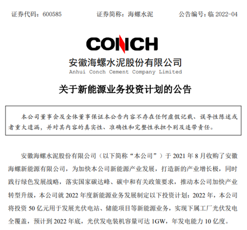 公開資料顯示,王誠出生于1965年3月,安徽淮南人,在擔(dān)任安徽省人民政府副秘書長之前,歷任淮南市副市長、市委常委、常務(wù)副市長,蚌埠市委副書記、蚌埠市市長,安徽海螺集團(tuán)黨委書記、董事長等職。2013年,王誠調(diào)任蚌埠市委副書記,2016年12月任蚌埠市代市長,2017年2月任蚌埠市市長;2021年4月,王誠任安徽海螺集團(tuán)有限責(zé)任公司黨委書記、董事長,任期為2021年5月28日-2022年5月29日。2022年5月17日,安徽海螺水泥股份有限公司(簡稱:海螺水泥)發(fā)布公告稱,其董事長王誠因個人工作變動原因,辭去公司董事長、執(zhí)行董事職務(wù),并不再擔(dān)任法定代表人。董事會決定暫由王建超代為履行公司董事長及與董事長有關(guān)的其它職責(zé),直至董事會選舉產(chǎn)生新一任董事長為止。海螺集團(tuán)作為全世界最大的建材企業(yè)集團(tuán)之一,王誠在任期即將結(jié)束前匆匆離職,便已引起外界猜測, 6月13日安徽紀(jì)檢監(jiān)察網(wǎng)公布的“王誠涉嫌嚴(yán)重違紀(jì)違法”一事,更是引起了熱議。據(jù)企查查獲悉,安徽省國資委通過安徽省投資集團(tuán)控股有限公司持有海螺集團(tuán)51%股權(quán),為控股股東,港股上市公司中國海創(chuàng)控股(香港)有限公司通過蕪湖海創(chuàng)實業(yè)有限責(zé)任公司持有海螺集團(tuán)49%股權(quán),為參股股東。在上市公司層面,王誠任職期間,海螺水泥作為海螺集團(tuán)旗下控股子公司,收購了關(guān)聯(lián)企業(yè)海螺新能源,加快對光伏儲能項目的投資,又在資本市場頻頻捧場同行定增,甚至直接增持和舉牌,一改此前低調(diào)的行事風(fēng)格。不僅如此,海螺集團(tuán)旗下港股公司海螺創(chuàng)業(yè)備受資本市場關(guān)注。3月30日,海螺創(chuàng)業(yè)分拆海螺環(huán)保在港交所主板上市。5月6日,海螺創(chuàng)業(yè)對外宣布正在考慮分拆旗下安徽海創(chuàng)綠能環(huán)保集團(tuán)股份有限公司在上交所主板獨(dú)立上市。如若成行,屆時海螺集團(tuán)將擁有5家上市平臺。傳統(tǒng)行業(yè)遇發(fā)展瓶頸,加速布局環(huán)保、新能源領(lǐng)域盡管近年來大動作不斷,但海螺集團(tuán)仍遭遇了發(fā)展瓶頸,業(yè)績增長基本停滯。高能耗、高排放行業(yè)在“碳達(dá)峰、碳中和”的雙碳背景下,面臨極大的轉(zhuǎn)型壓力。
