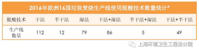 表1 歐洲垃圾焚燒廠脫酸工藝配置統(tǒng)計(jì)表(單位:個(gè))