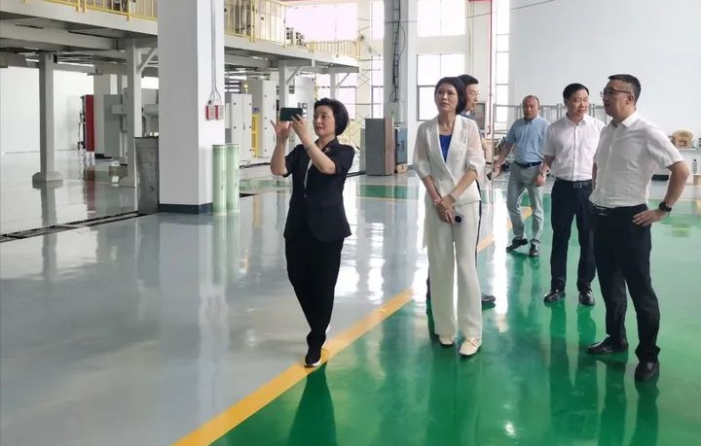 竺主席及徐主任一行實(shí)地參觀了浙江易膜新材料科技有限公司廠區(qū)和生產(chǎn)現(xiàn)場,深入了解建設(shè)情況和生產(chǎn)經(jīng)營情況,現(xiàn)場參觀了數(shù)字化制膜線和卷膜線,以及“領(lǐng)雁”重點(diǎn)研發(fā)攻關(guān)項(xiàng)目的海水淡化膜新產(chǎn)線,并對(duì)該項(xiàng)目一期工作順利投產(chǎn)給予充分肯定。