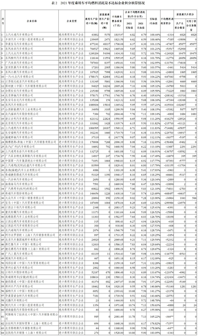 原標(biāo)題:2021年度中國乘用車企業(yè)平均燃料消耗量與新能源汽車積分情況公告