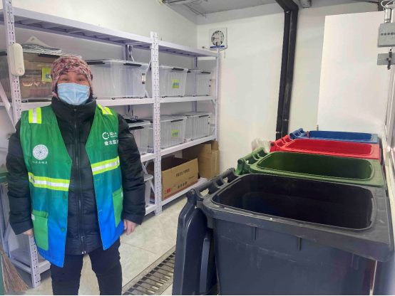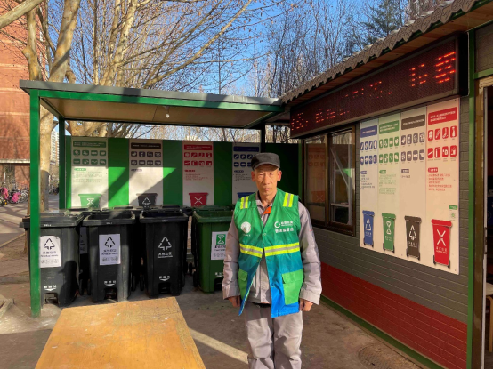 圖12 北京市石景山區(qū)永樂小區(qū)垃圾分類驛站的垃圾分類普法監(jiān)督員,攝影:李澤軍_1106794,拍攝時間:2022年3月4日