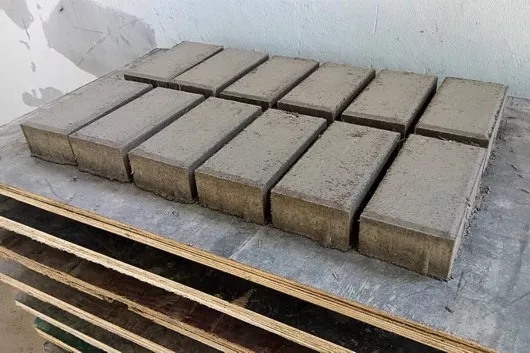 圖片說明:用骨料摻和水泥制成的“再生磚”