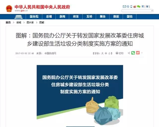 2017年3月18日,為切實推動生活垃圾分類,提高新型城鎮(zhèn)化質量和生態(tài)文明建設水平,國家發(fā)展改革委、住建部頒布《生活垃圾分類制度實施方案》,要求在中國46個城市先行實施生活垃圾強制分類,并提出了“到2020年底,基本建立垃圾分類相關法律法規(guī)和標準體系,形成可復制、可推廣的生活垃圾分類模式,在實施生活垃圾強制分類的城市,生活垃圾回收利用率達到35%以上?!钡闹饕繕恕?/p>