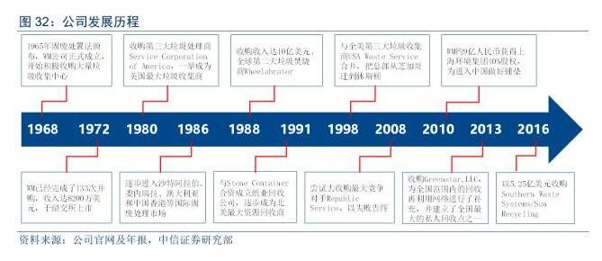 上市之后,公司持續(xù)開啟一系列收購,僅在在上市后一年半內(nèi)就完成75起并購。1998年,公司與全美第三大垃圾收集企業(yè)USAWasteService合并,2008年公司出價(jià)62億美金欲收購全美第二大固廢處理企業(yè)RepublicService,但最終沒有獲得成功。在立足美國的基礎(chǔ)上,WM也在1975~1989年逐步進(jìn)入沙特阿拉伯、阿根廷、澳大利亞、委內(nèi)瑞拉和中國香港等地區(qū),從事市政垃圾處理。1984年公司收購ServicesCorporationofAmercia,收入規(guī)模從10億美元增加到12億美元,一舉成為美國最大固廢處理公司。