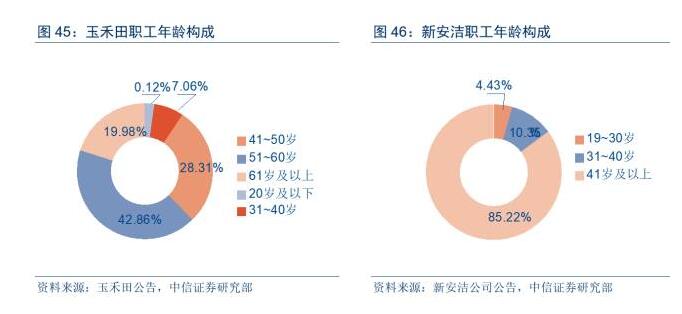 目前國內(nèi)環(huán)衛(wèi)行業(yè)的勞動(dòng)力密度程度高且勞動(dòng)力老齡化問題突出。環(huán)衛(wèi)服務(wù)業(yè)很多從業(yè)人員已經(jīng)超過退休年齡。從玉禾田和新安潔兩家環(huán)衛(wèi)公司職工年齡統(tǒng)計(jì)可以看到,40歲以上員工占大部分,其中51歲以上比例也不小。如果只對環(huán)衛(wèi)一線員工進(jìn)行統(tǒng)計(jì),老齡員工占比會(huì)進(jìn)一步提升。向前看,老齡化未來會(huì)隨著人口紅利的喪失會(huì)變得更加突出。
