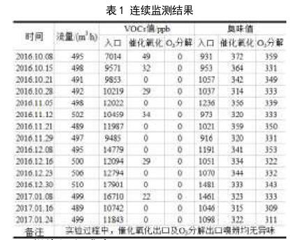 目前,整套廢氣處理工藝已經(jīng)連續(xù)正常運行4個月,通過連續(xù)監(jiān)測處理效果表明,處理站周邊基本無異昧,排放的