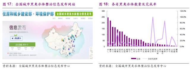 根據(jù)《“十三五”全國城鎮(zhèn)污水處理及再生利用設(shè)施建設(shè)規(guī)劃》,“十三五”期間,需整治1992個城市黑臭水體,總長度5904公里。地級及以上城市黑臭水體治理中控源截污涉及的設(shè)施建設(shè)投資約1700億元。