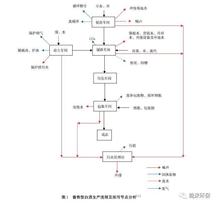 1 醬香型白酒生產(chǎn)工藝產(chǎn)污情況