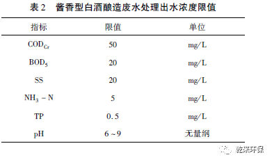 2. 7 出水口:出水口前端需設置一小型儲水井,并安置中水回用泵及配套管閥,以便將處理后出水回用做釀造車間場地沖洗水、廢水處理污泥脫水車間沖洗水、集水井緩沖液以及廠區(qū)綠化用水,實現(xiàn)白酒企業(yè)的節(jié)能、降耗、減污、增效。最終,處理水質達到GB 27631—2011《發(fā)酵酒精和白酒工業(yè)水污染物排放標準》中表3 規(guī)定的排放限值(表2)要求排放。