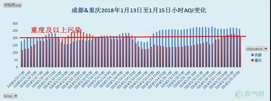 1月13日至1月15日,在不利氣象條件影響下,成都、重慶分別經(jīng)歷了50小時(shí)和25小時(shí)的重度及以上污染過程。
