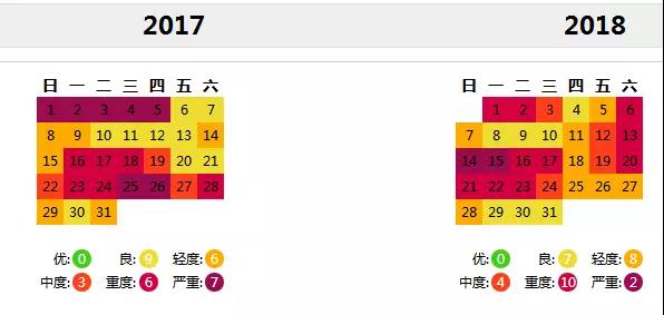 從污染日歷來看,今年1月份也并未比去年有多少改善。